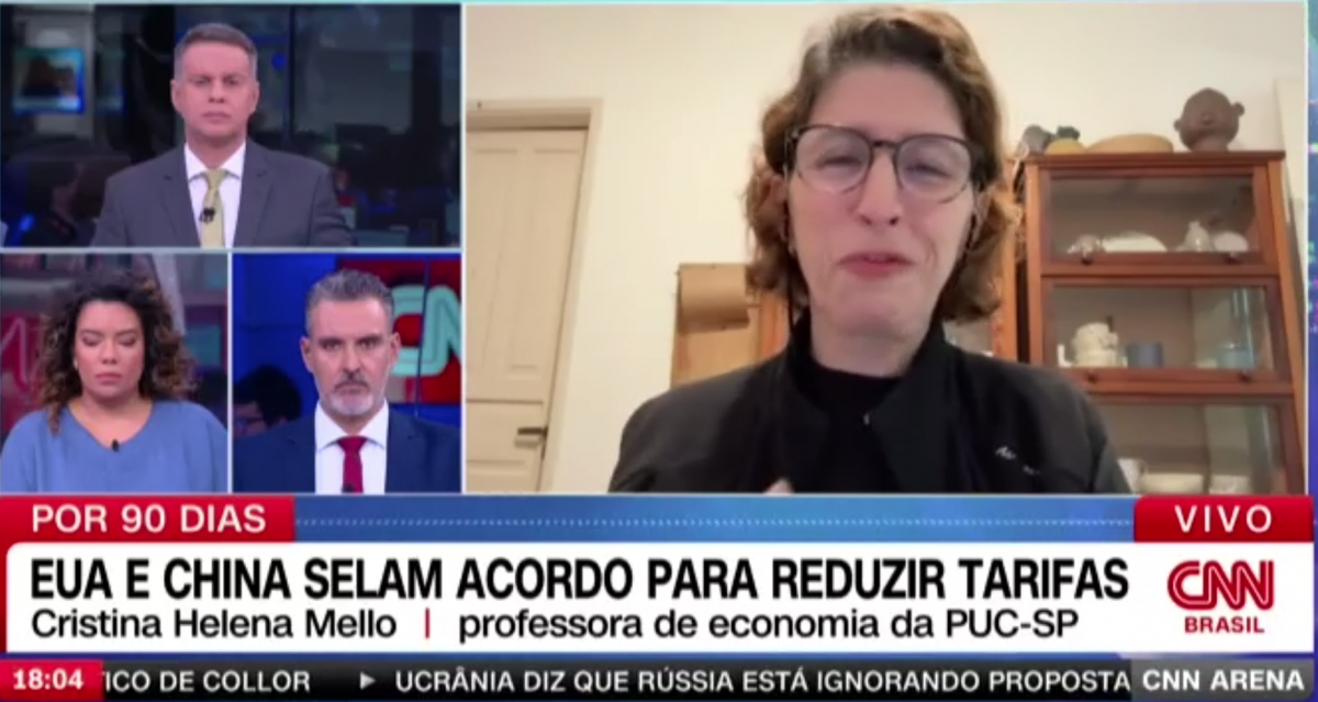 A profa. Cristina Helena de Mello (Economia) participou da reportagem EUA e China concordam em reduzir tarifas reciprocas, veiculada pela Tv CNN. Segunda a economista, a China teve um impacto grande e uma desaceleração da sua economia, na geração de empregos e teve de refazer parcerias com outros países que têm economias menores que a norte-americana, para poder colocar seus produtos. Já o Estados Unidos tem uma coisa que tem sido pouco noticiada, estava ficando já bastante desabastecido em muitos produtos.